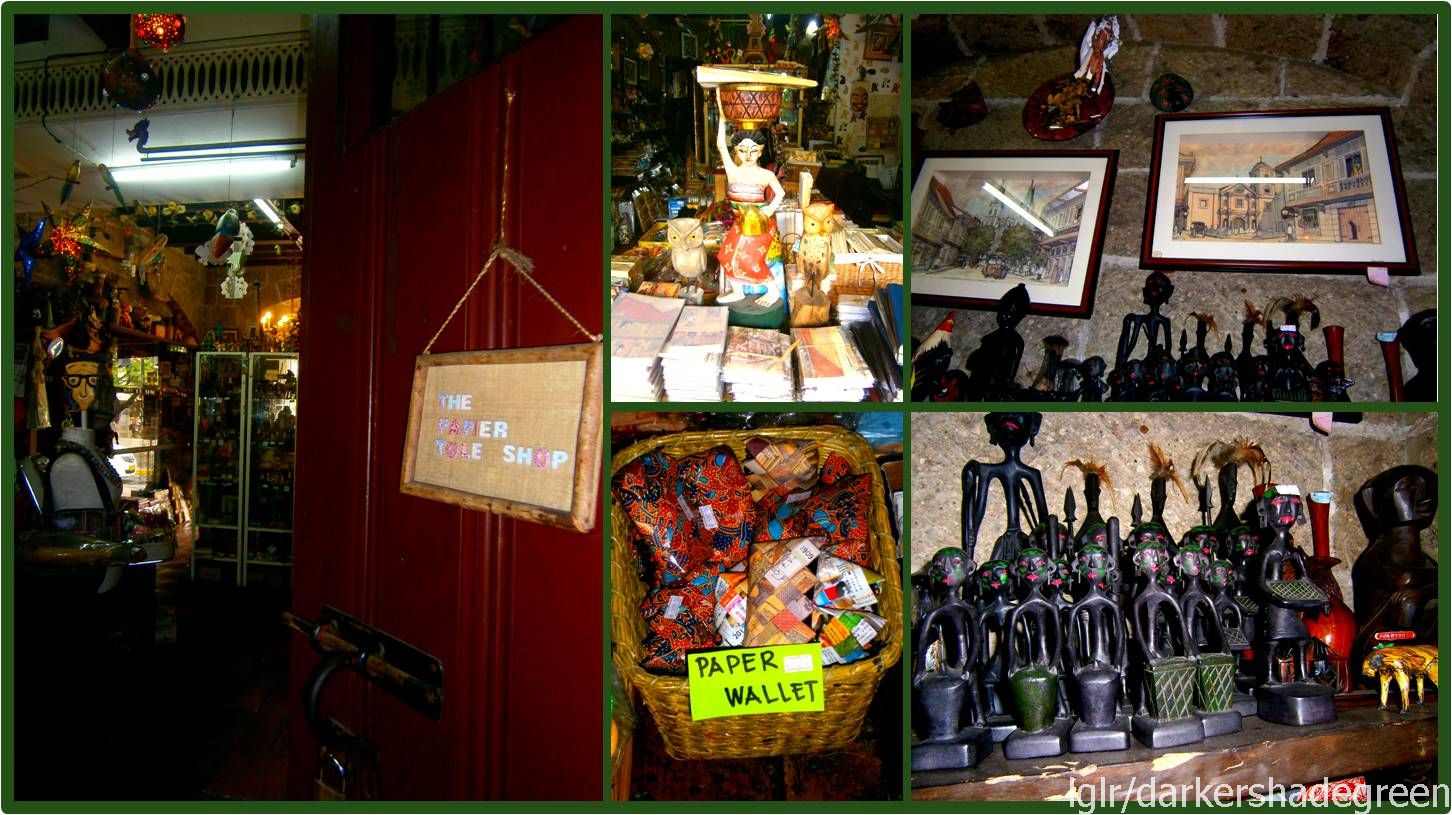 I also decided to browse around the ground floor shops in the complex. The souvenir shop, The Paper Tole Shop, is this kitchy souvenir shop filled with a myriad of things with prizes ranging from P10.00 to P5,000.00. I lost about 20 minutes browsing through the wooden anito figurines, the framed dioramas, the paper and cloth bags, and the different Intramuros- and Old Manila-inspired items that the owner makes. I also watched the owner make paper fans for a couple of minutes.