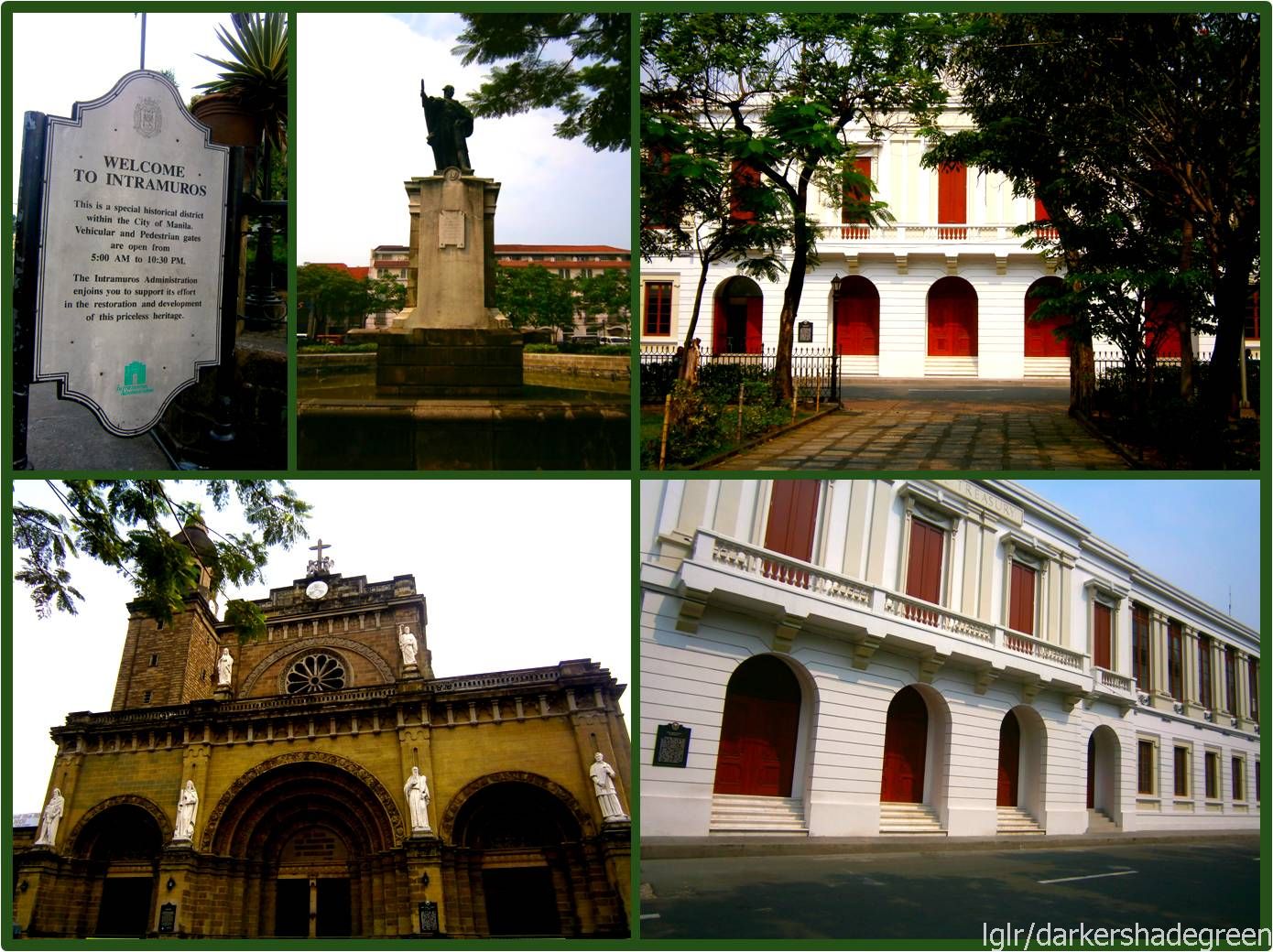 You can see signs of that everywhere; new building designs or renovations, while indeed looking new, still has that Spanish-era stone building feel that tells you that it would age quite well. Though, according to history books, most of the structures within Intramuros are restorations; the San Agustin Church is the only structure that survived (with just damages and not totally destroyed like the Manila Cathedral pictured in the lower-left of the frame below) the eight-day siege when the Americans liberated the Philippines from the Japanese in World War 2.